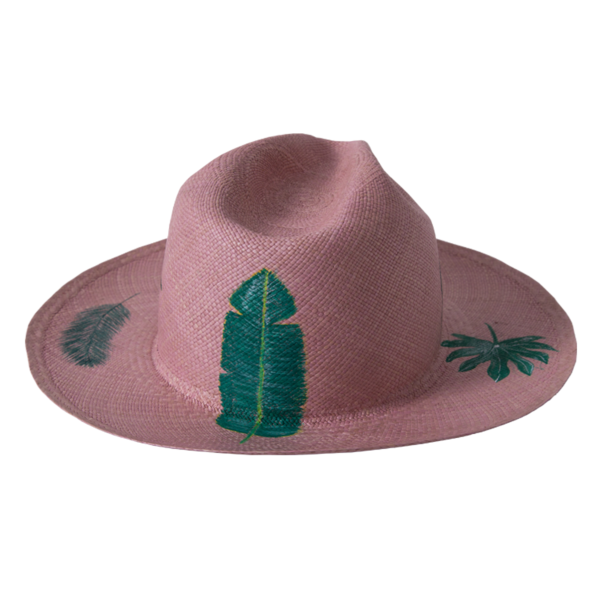 Rosewood straw with handpainted green leaves, standard brim. Our all time best seller.