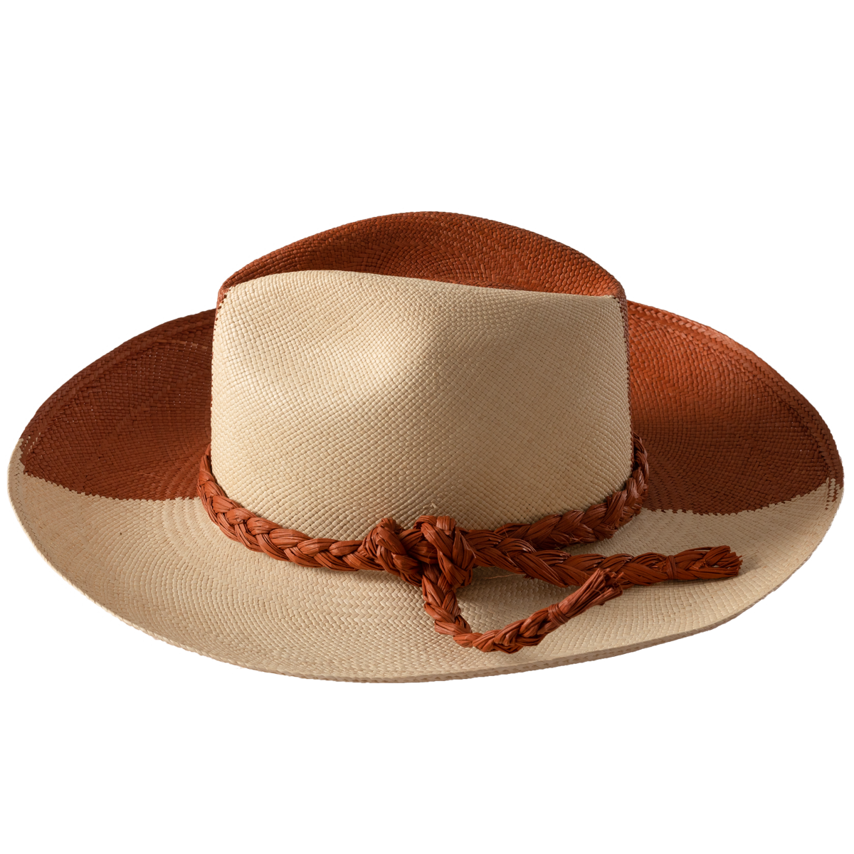Fedora, caoba and natural straw, toquilla straw braided caoba band, wide brim.